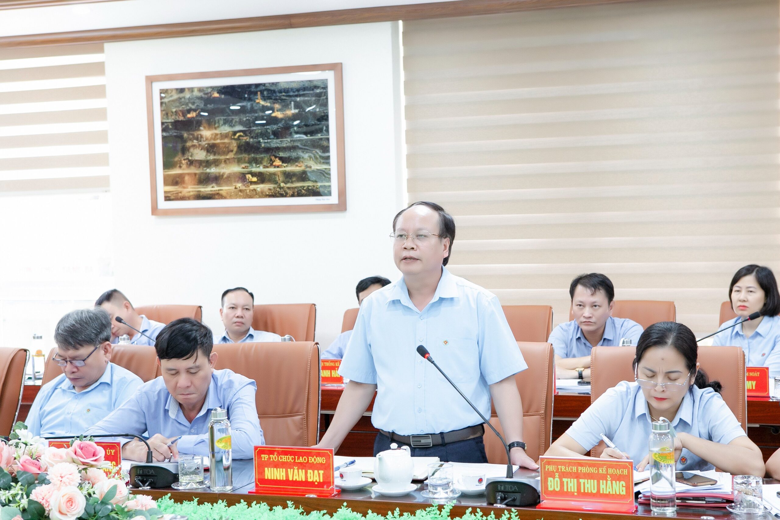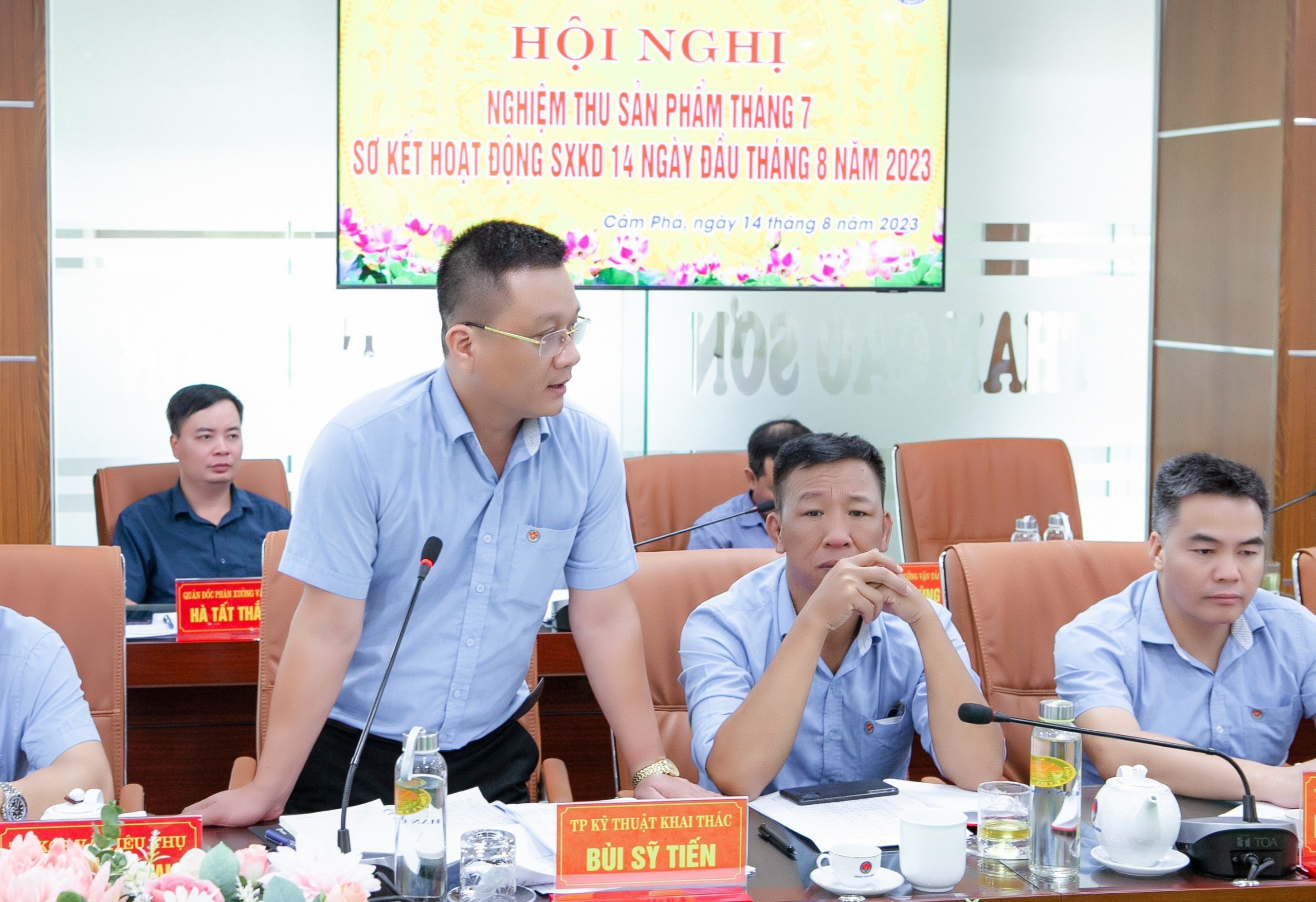Hội nghị đã nghe: Phòng Trắc địa – Địa chất báo cáo số liệu nghiệm thu tháng 7/2023; Phòng ĐKSX thông báo kết quả thực hiện các chỉ tiêu SX chủ yếu 14 ngày đầu tháng 8/2023; Phòng KH báo cáo đánh giá công tác thực hiện KH tháng 7 và công tác thực hiện quản trị chi phí tháng 7, 7 tháng đầu năm 2023.