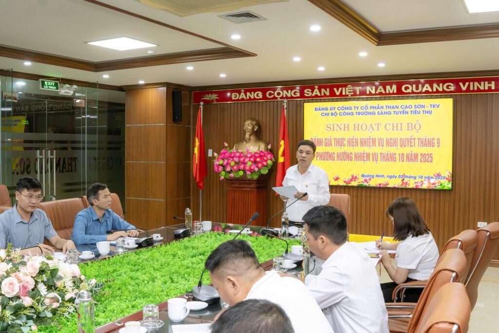 Thực hiện chỉ đạo của Đảng ủy Công ty, chiều ngày 03 tháng 10 năm 2025, Chi bộ Công trường Sàng tuyển tiêu thụ đã tổ chức sinh hoạt chuyên đề gắn với việc nghiên cứu, quán triệt và triển khai thực hiện 04 nghị quyết quan trọng của Bộ Chính trị. Chi bộ vinh dự được đồng chí Bùi Xuân Vững – UVBTV Đảng ủy Than Quảng Ninh; đồng chí Lê Văn Hoàng – UVBCH Đảng bộ Công ty đến dự và chỉ đạo.