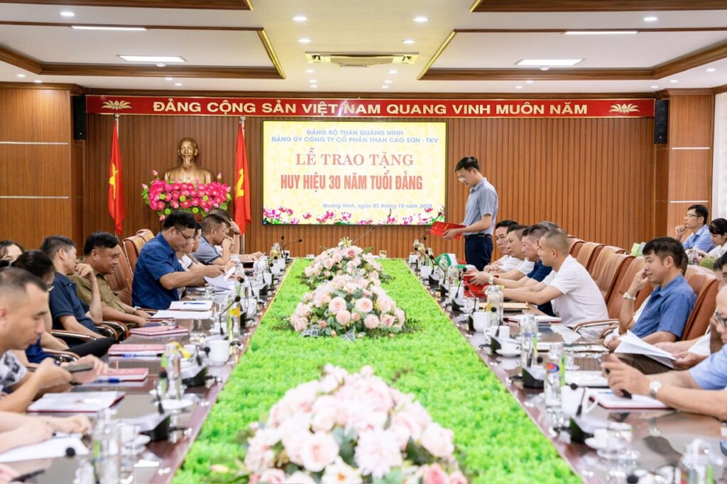 Được sự ủy quyền của BTV Đảng Ủy Công ty, Chi bộ Phòng Thanh tra Bảo vệ đã tổ chức Lễ trao tặng huy hiệu 30 năm tuổi Đảng đối với đồng chí Triệu Ngọc Sơn – đảng viên làm nhiệm vụ bảo vệ tài nguyên ranh giới mỏ. Đồng chí Nguyễn Ngọc Toàn – Ủy viên BCH Đảng bộ , Phó Giám đốc Công ty, đồng chí Lê Văn Hoàng – Ủy viên BCH Đảng bộ, Phó phòng Tổ ức Đảng ủy Công ty đã tới dự buổi lễ, công bố quyết định và trao tặng Huy hiệu 30 năm tuổi Đảng; Đồng chí Ngô Quang Kiên – Bí thư Chi bộ – Trưởng phòng TB cùng các đồng chí đảng viên đã tặng hoa chúc mừng đồng chí Triệu Ngọc Sơn. Đây là phần thưởng cao quý, ghi nhận những đóng góp bền bỉ, trách nhiệm và niềm tin son sắt của đồng chí Triệu Ngọc Sơn đối với Đảng, với sự phát triển chung của Công ty.