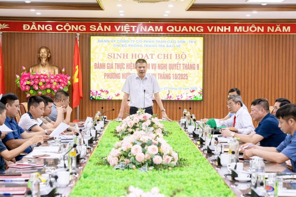 Ngay sau buổi Lễ, đồng chí Bí thư chi bộ đã triển khai sâu rộng các Nghị quyết về: hội nhập quốc tế; bảo đảm an ninh năng lượng quốc gia; đột phá trong giáo dục – đào tạo; bảo vệ, chăm sóc và nâng cao sức khỏe nhân dân. Đây là định hướng quan trọng, gắn liền trực tiếp với nhiệm vụ chính trị của mỗi cán bộ, đảng viên; Thông tin tới toàn thể Đảng viên kết quả Đại hội Đảng bộ Tỉnh Quảng Ninh khóa XVI, nhiệm kỳ 2025-2030. Đồng thời, đồng chí đã thay mặt Ban Chi ủy đánh giá kết quả thực hiện nhiệm vụ của đơn vị trong tháng 9 đã hoàn thành các nhiệm vụ đề ra, công tác quản lý, bảo vệ tài sản, tài nguyên, ranh giới được đảm bảo; ANTT được giữ vững; đời sống, việc làm và thu nhập của CBCN ổn định. Bước sang tháng 10, chi bộ tiếp tục phát huy kết quả đạt được, tập trung tăng cường công tác bảo vệ ANTT, nâng cao hiệu quả phối hợp giữa các tổ chức đoàn thể, chuẩn bị cho Đại hội Công đoàn nhiệm kỳ 2025–2030 và triển khai tốt các nhiệm vụ chính trị của đơn vị. Cũng tại buổi sinh hoạt, Chi bộ tổ chức chúc mừng các đồng chí đảng viên đã hoàn thành xuất sắc nhiệm vụ được giao và nghỉ chế độ theo quy định.