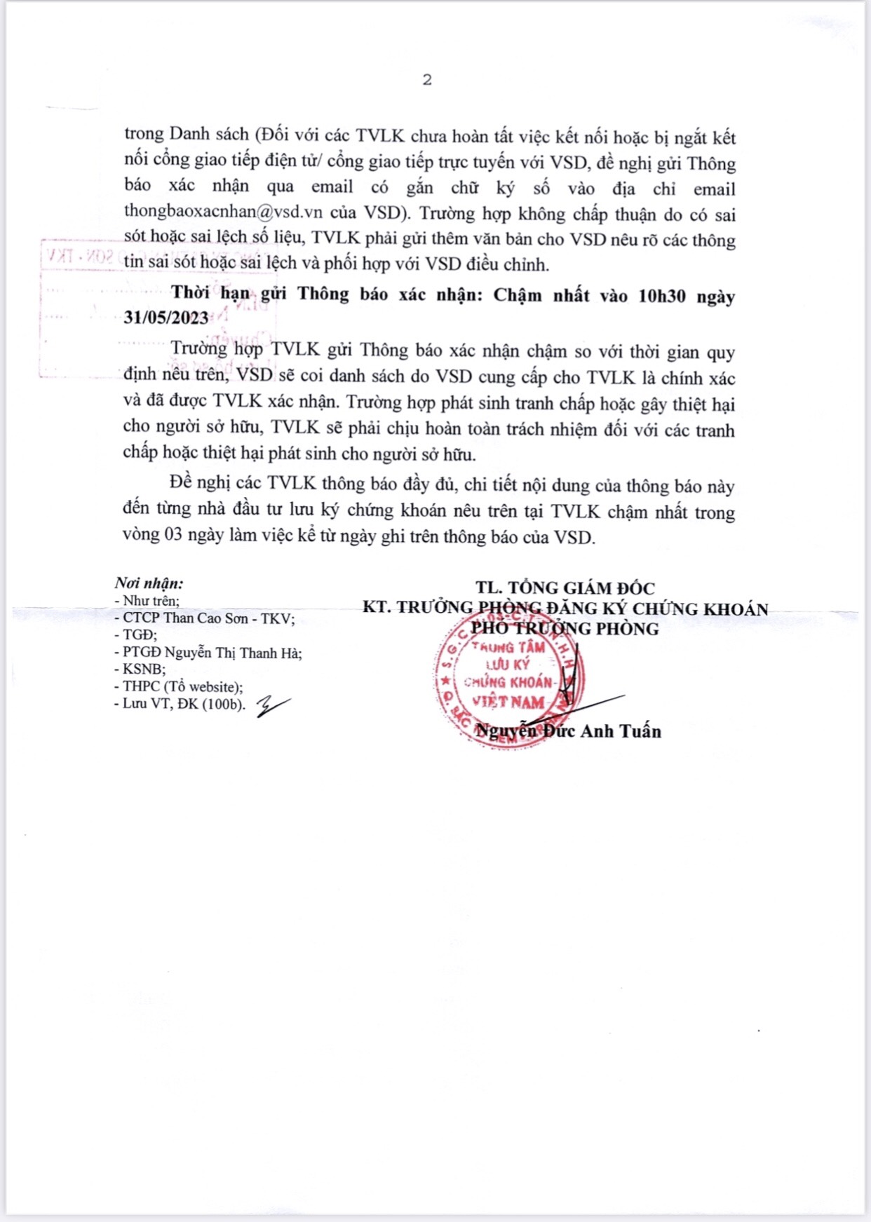 Thông báo số 1486/TB-VSD của Trung tâm lưu ký chứng khoán Việt Nam Về ngày đăng ký cuối cùng và xác nhận danh sách người sở hữu chứng khoán
